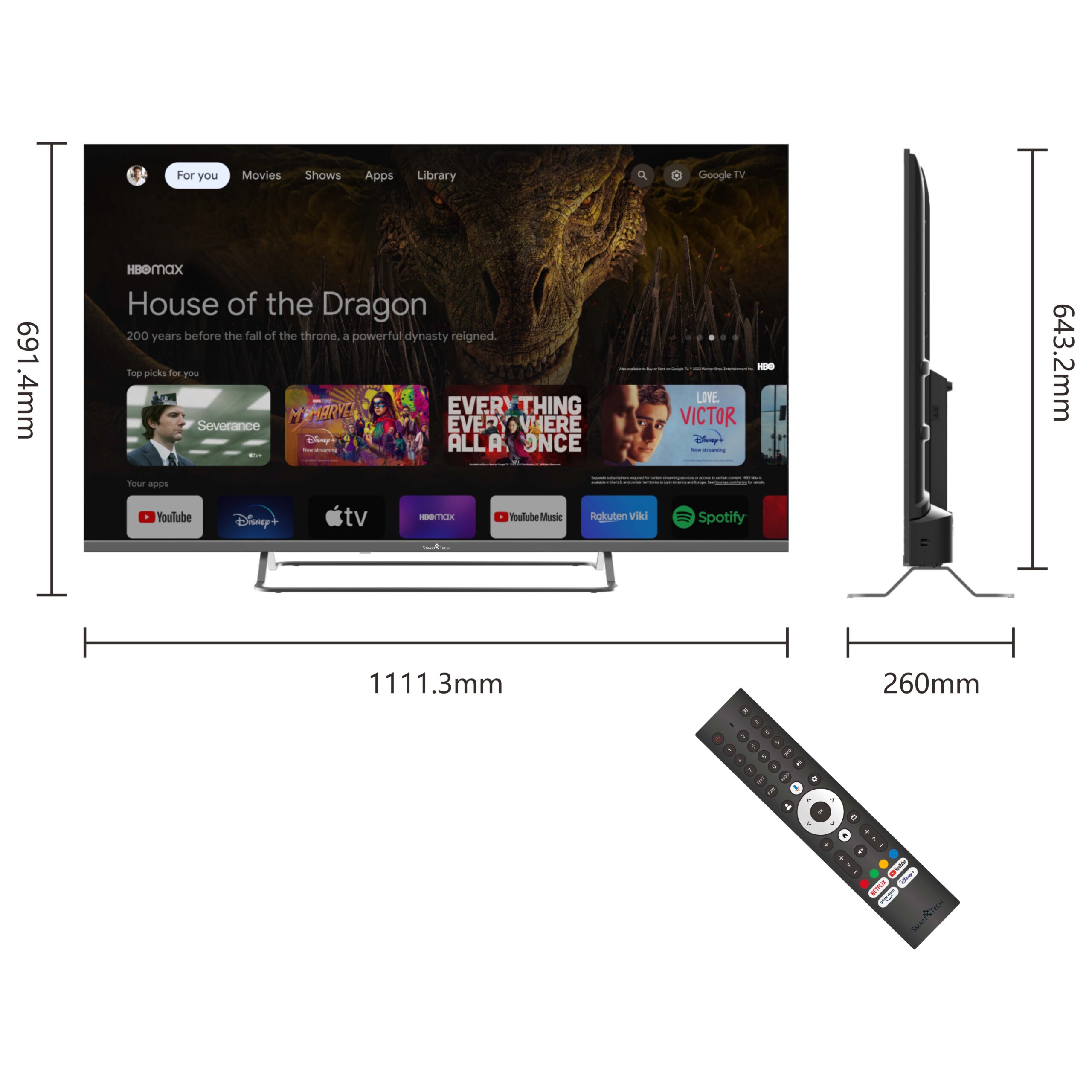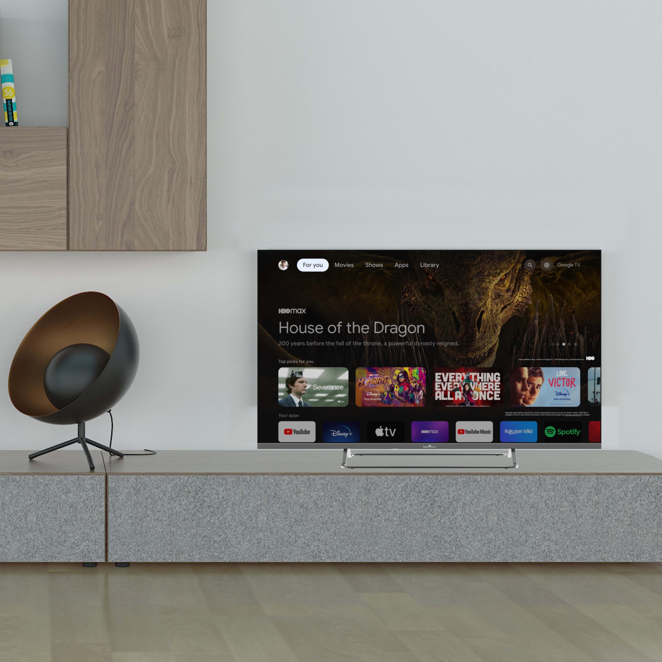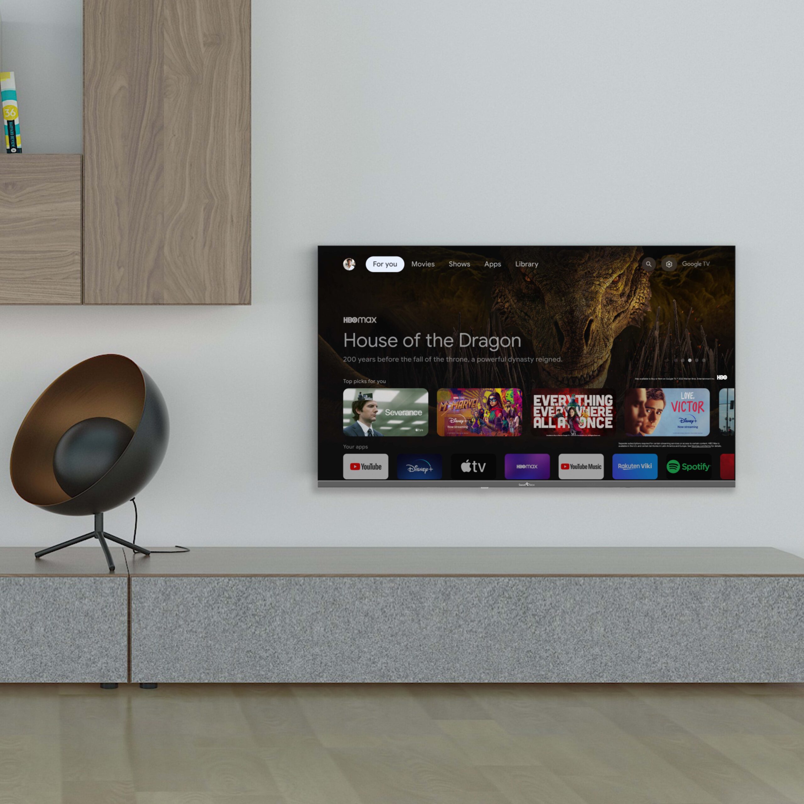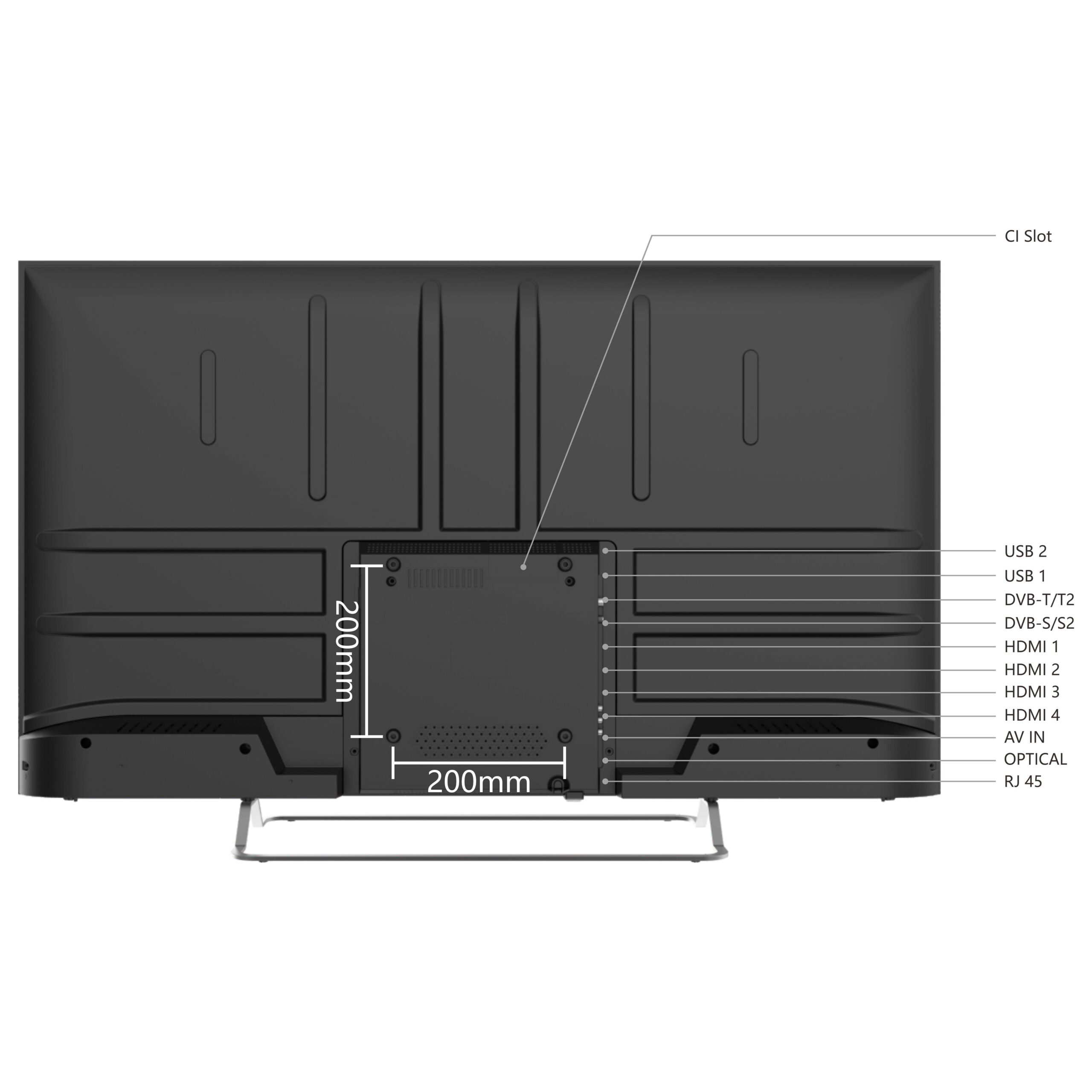 Google TV rassemble des films, des émissions et bien plus encore dans vos applications et vos abonnements, et les organise pour vous. Accès facile à tout ce que vous regardez. Chat vidéo simple et de haute qualité. ARM CA53 *4 TEE 1.45GHz, Nanotechnologie Mali G52 MC1 550MHz, ecacité énergétique Plus grande mémoire cache pour un fonctionnement fluide Plus de stockage pour les APPs que vous aimez Un son incroyable avec la technologie Dolby Audio. Grâce à cette technologie, le TV ore un son cristallin, des dialogues faciles à entendre, plus de détails et un son surround réaliste pour améliorer le divertissement que vous aimez. Get cinematic immersion. The new speakers have adopted larger drivers that enhance the audio experience, including stronger bass and echo to amplify your acoustic immersion. Supporting 4K video at 60fps and 32-channel audio, HDMI 2.0 not only brings stunning graphics performance and unparalleled reality to your TV, but also a lossless audio experience. Connecting via Bluetooth to the remote control, headset, sound bar, smartphone and other Bluetooth devices is a breeze. Enjoy the fast and stable Wi-Fi connection under 2T2R technology. No more glitches and lag while streaming your movies and shows.